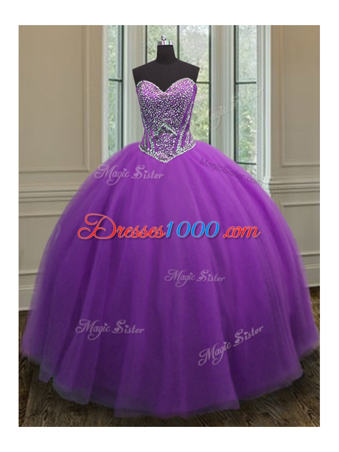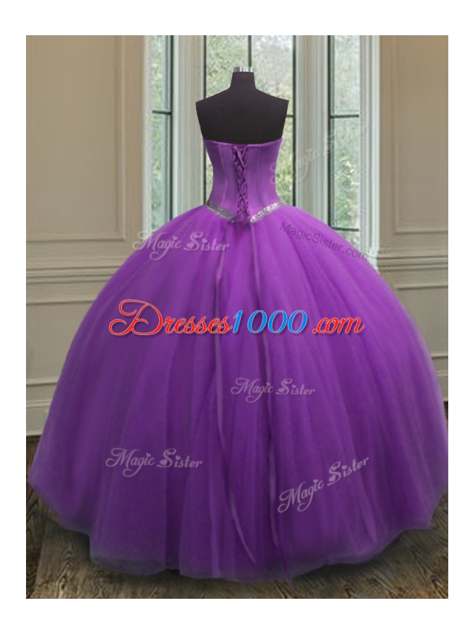 Pretty Floor Length Ball Gowns Sleeveless Eggplant Purple Sweet 16 Dress Lace Up