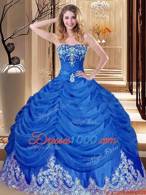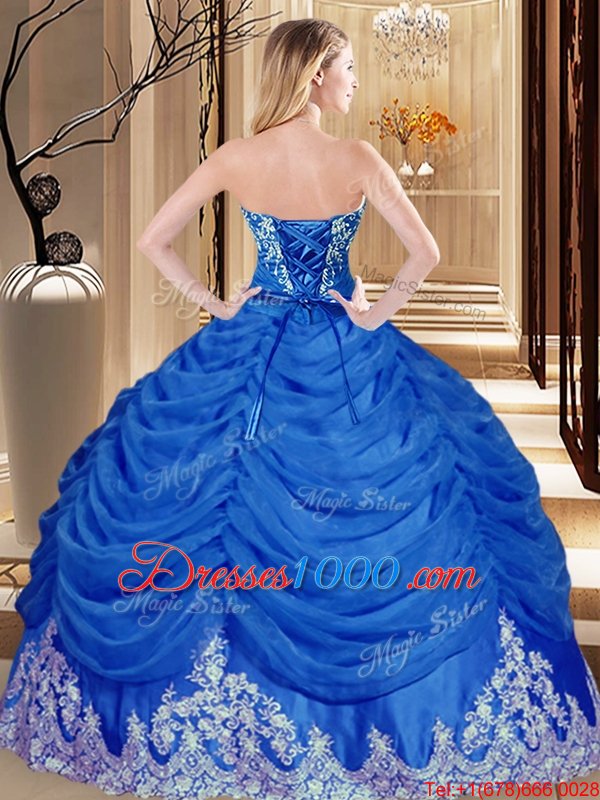 Sleeveless Floor Length Appliques and Pick Ups Lace Up 15 Quinceanera Dress with Royal Blue