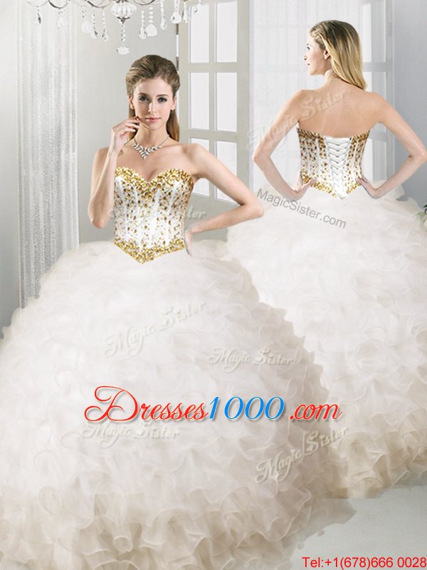 Extravagant Ball Gowns Ball Gown Prom Dress White Sweetheart Organza Sleeveless Floor Length Lace Up