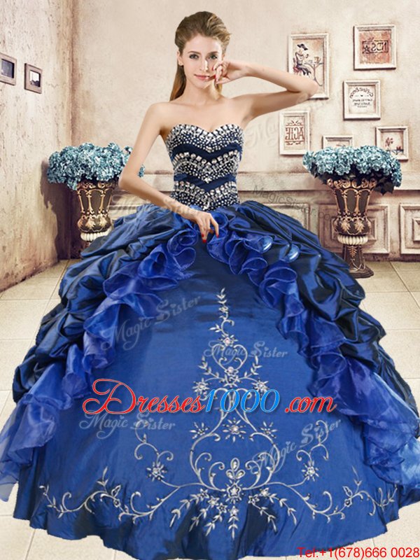 Wonderful Sleeveless Floor Length Beading and Embroidery and Pick Ups Lace Up 15th Birthday Dress with Navy Blue