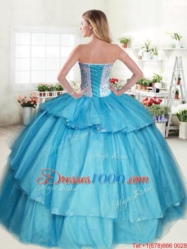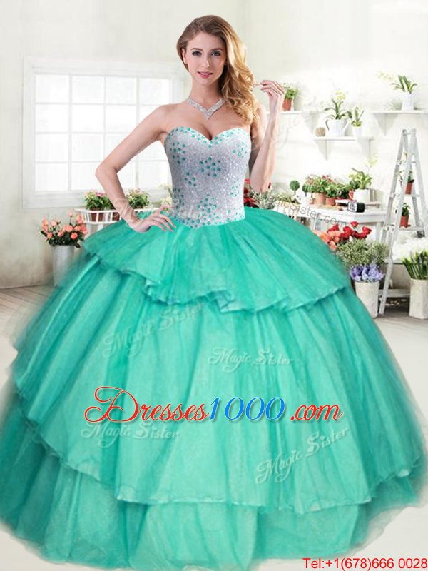 Beading and Ruffled Layers Quinceanera Gown Apple Green Lace Up Sleeveless Floor Length