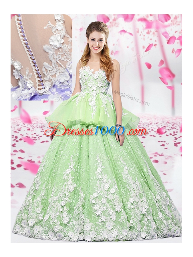 Scoop Sleeveless Lace Up Floor Length Lace and Appliques 15 Quinceanera Dress