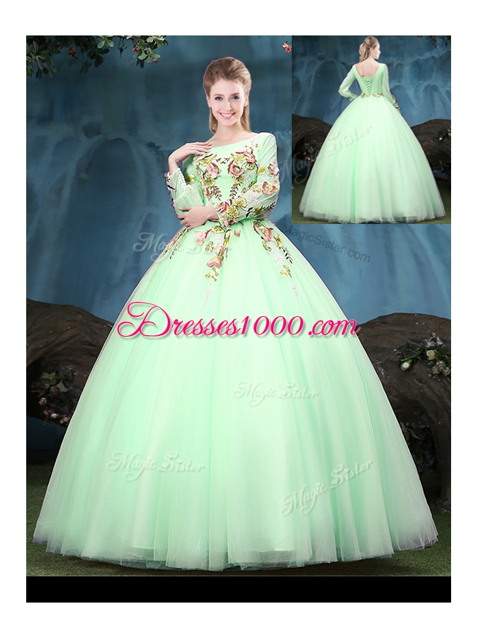 Great Scoop Long Sleeves Appliques Lace Up Ball Gown Prom Dress
