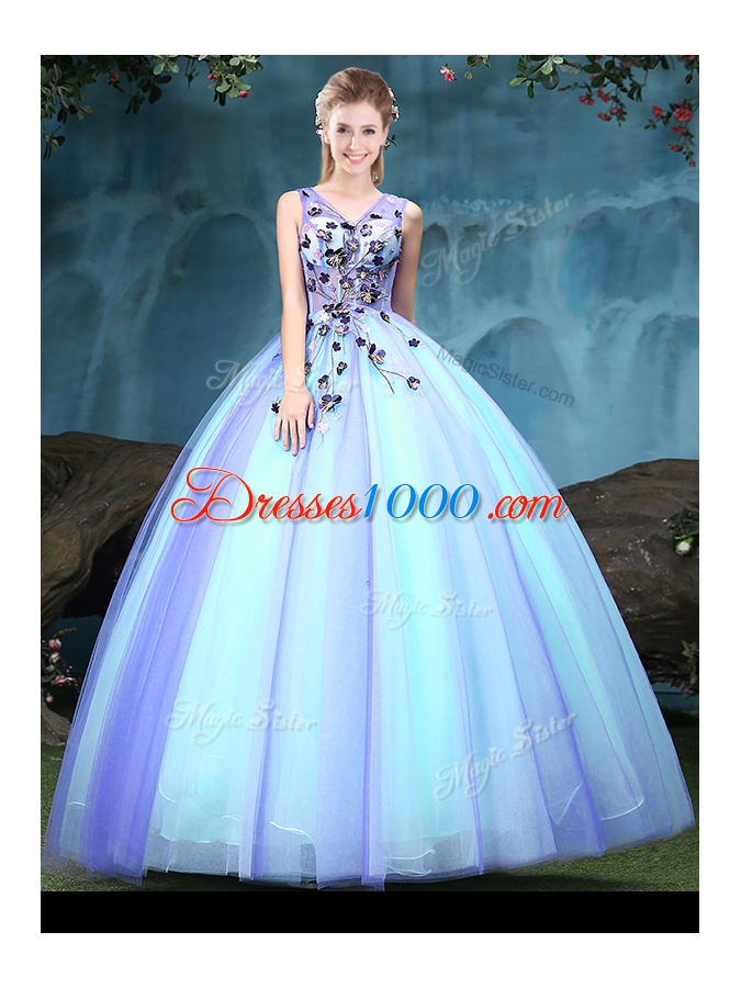 Multi-color Sleeveless Tulle Lace Up 15 Quinceanera Dress for Military Ball and Sweet 16 and Quinceanera
