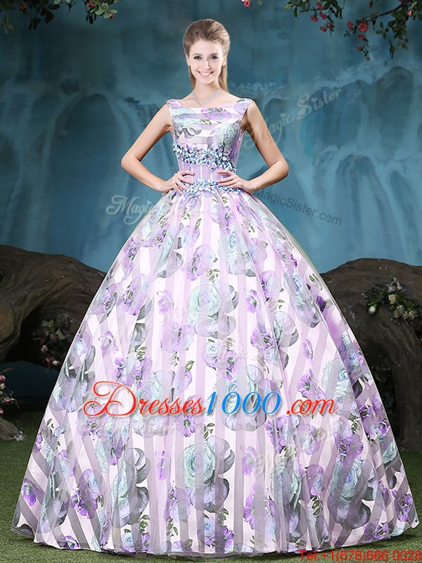 Straps Straps Multi-color Tulle Lace Up Ball Gown Prom Dress Sleeveless Floor Length Appliques and Pattern