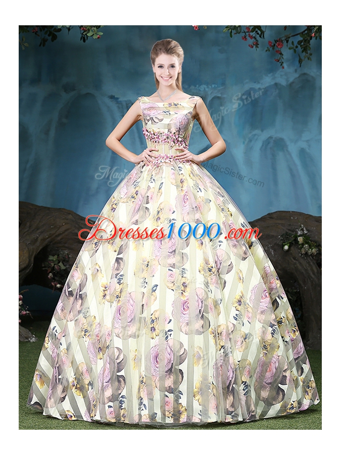 Fancy Straps Straps Floor Length Multi-color Sweet 16 Dress Tulle Sleeveless Appliques and Pattern