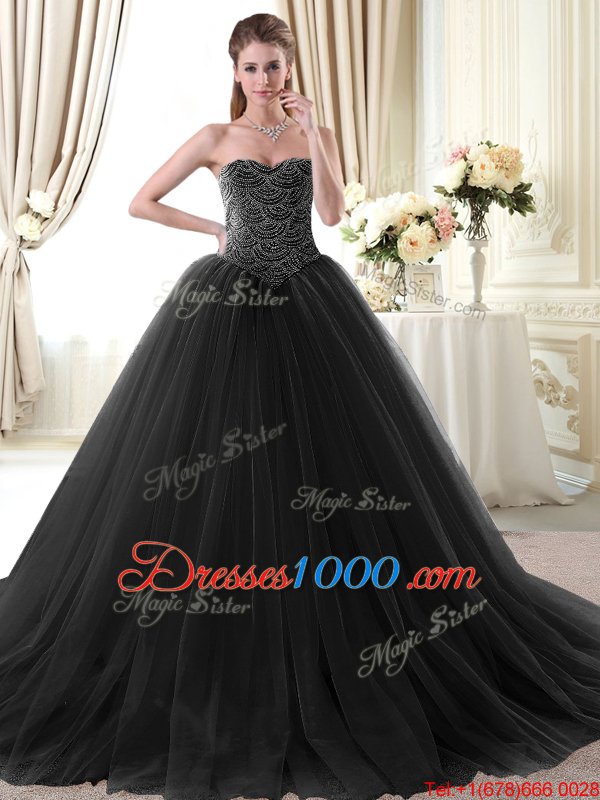 Sexy Black Sweetheart Neckline Beading Quinceanera Dress Sleeveless Lace Up