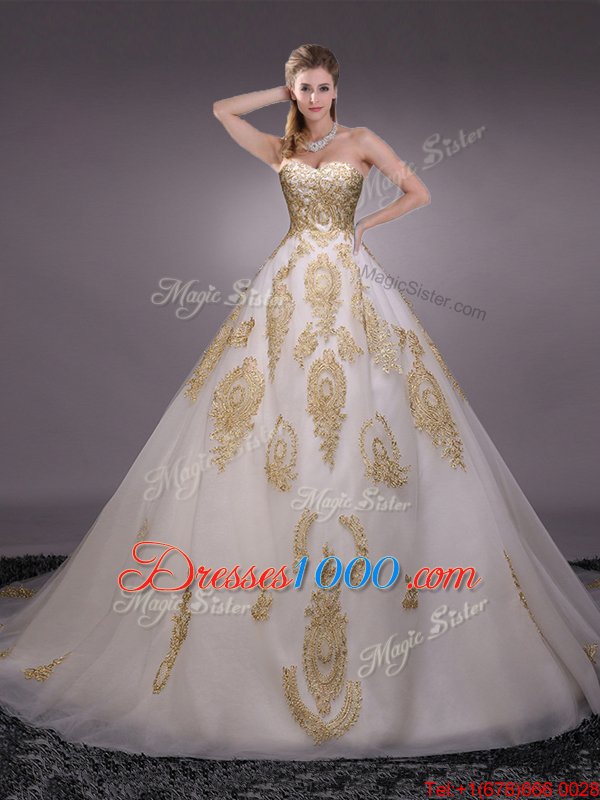 With Train Ball Gowns Sleeveless White Quince Ball Gowns Brush Train Lace Up