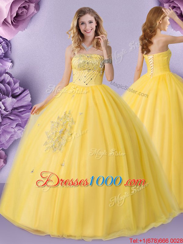 Royal Blue Organza Lace Up Strapless Sleeveless Floor Length Quinceanera Dress Beading and Ruffles