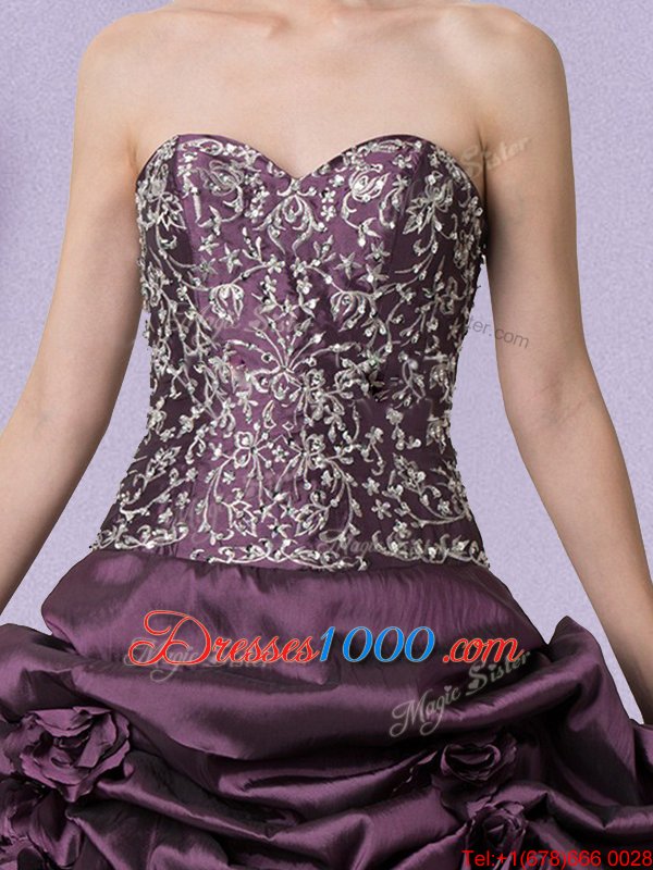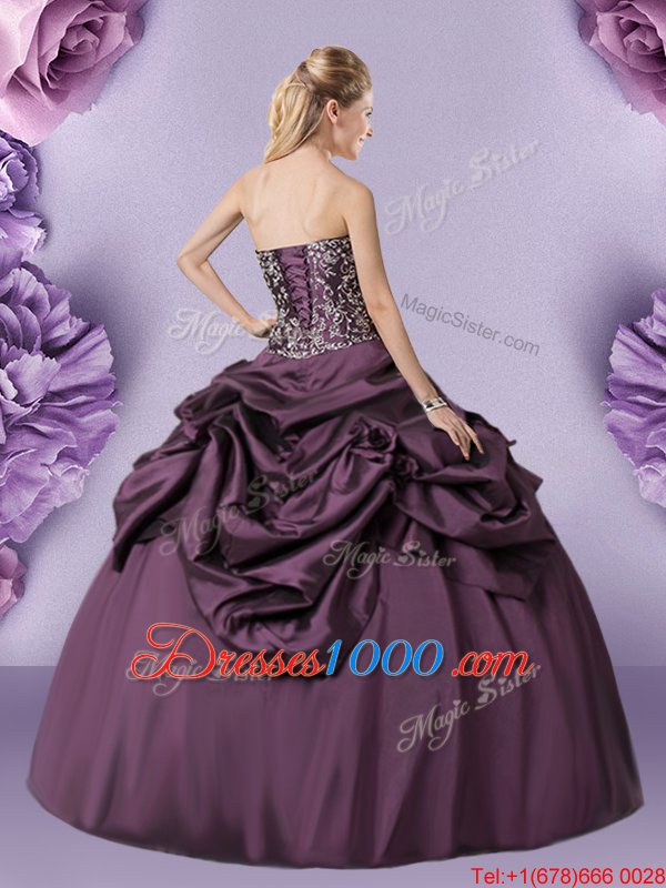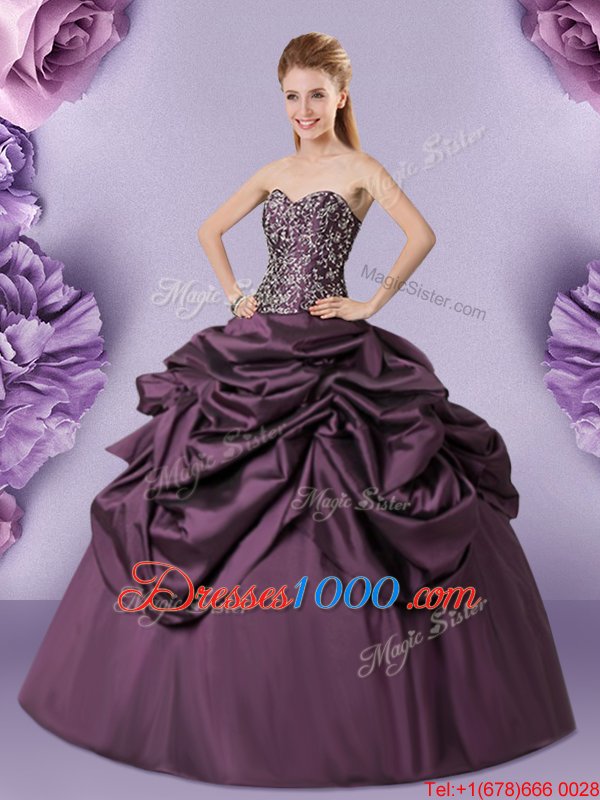 Taffeta Sleeveless Floor Length Quinceanera Gown and Embroidery and Pick Ups
