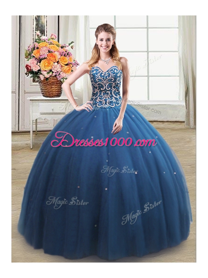 Teal Sweetheart Neckline Beading Ball Gown Prom Dress Sleeveless Lace Up