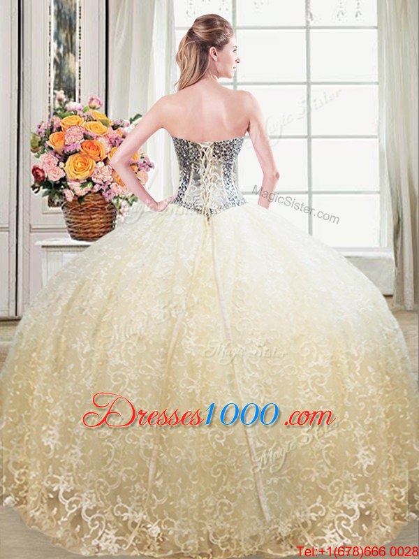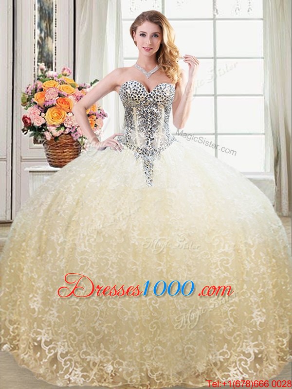 Champagne Sleeveless Beading and Lace Floor Length Quinceanera Gown