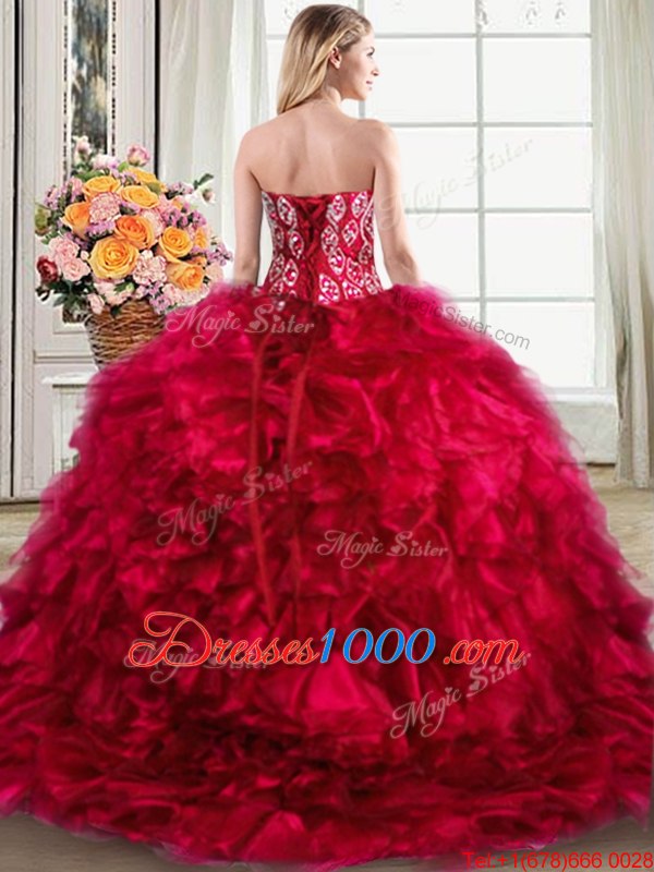 Red Sleeveless Brush Train Beading and Ruffles Vestidos de Quinceanera