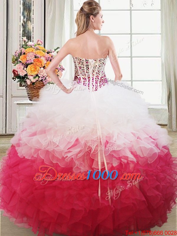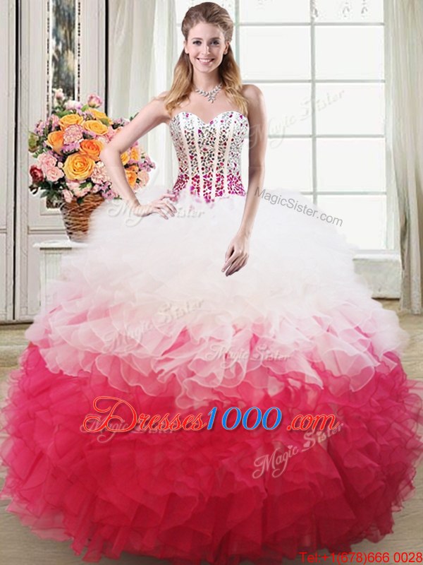 Ball Gowns 15th Birthday Dress Pink And White Sweetheart Organza Sleeveless Floor Length Lace Up