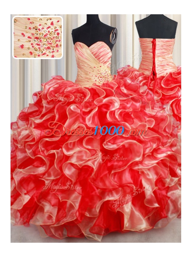 Sleeveless Beading and Ruffles Lace Up Vestidos de Quinceanera