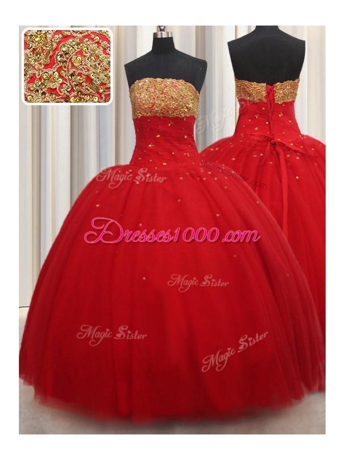 Beading Quinceanera Gowns Red Lace Up Sleeveless Floor Length