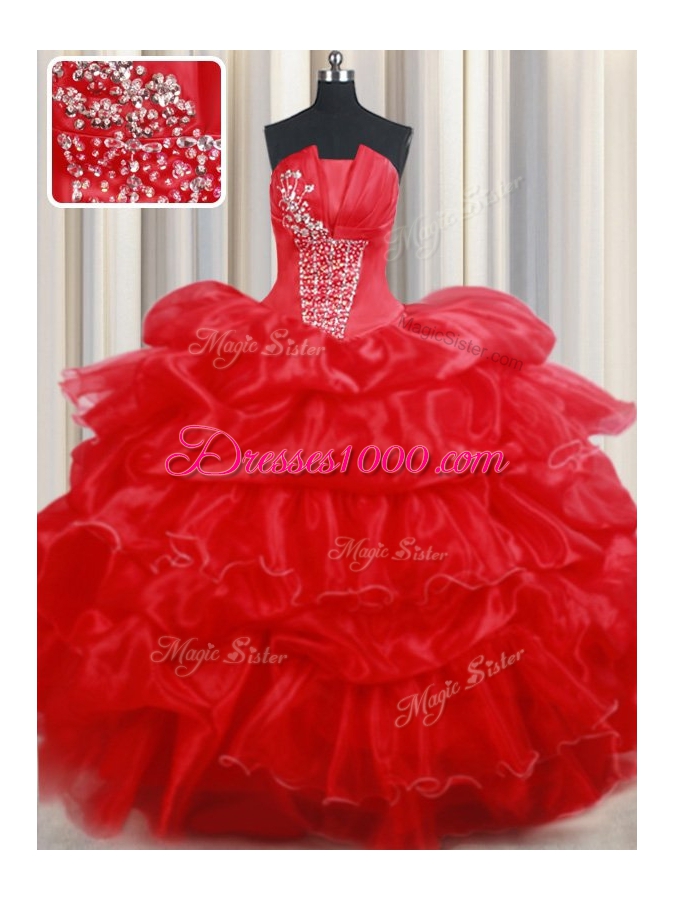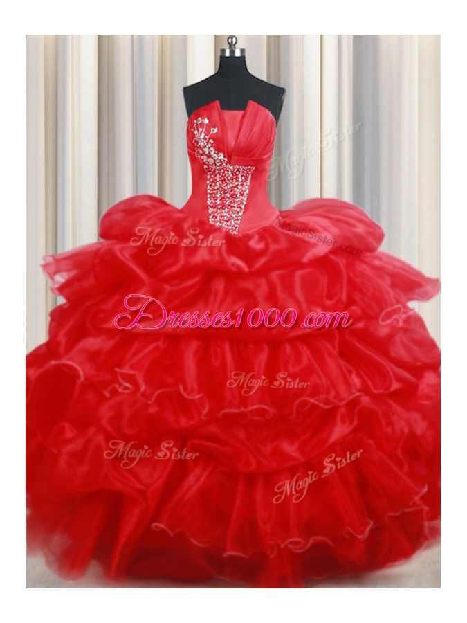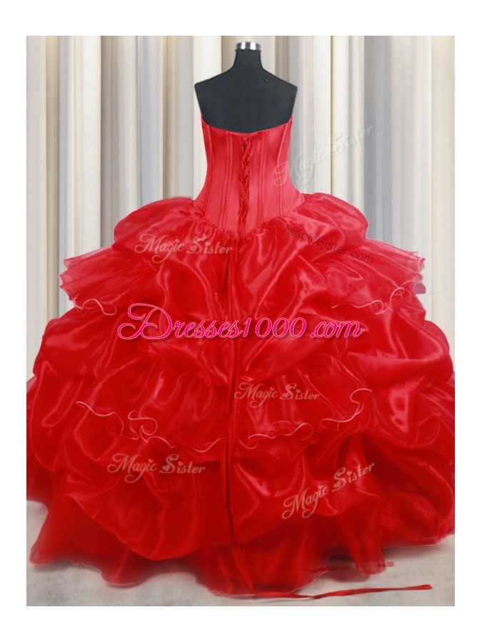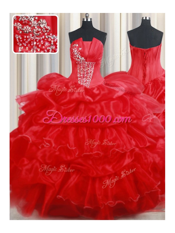 Enchanting Beading and Pick Ups Quinceanera Gowns Red Lace Up Sleeveless Floor Length