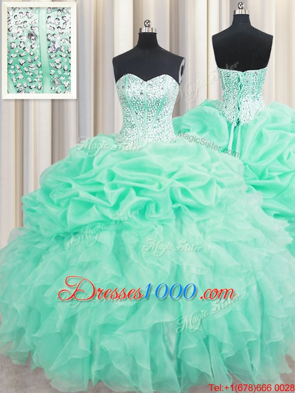 Sweetheart Sleeveless Organza Quince Ball Gowns Beading and Ruffles and Pick Ups Lace Up