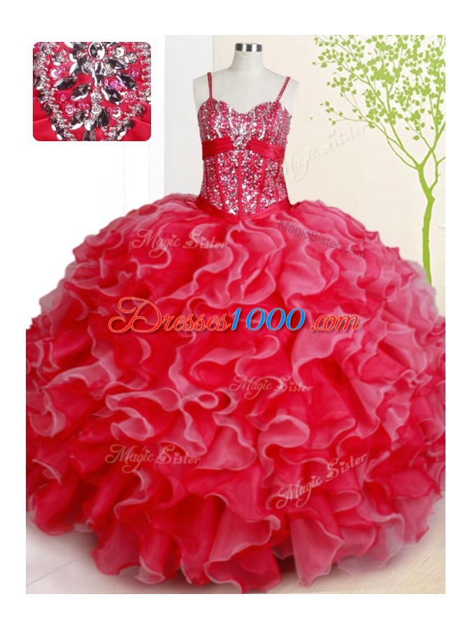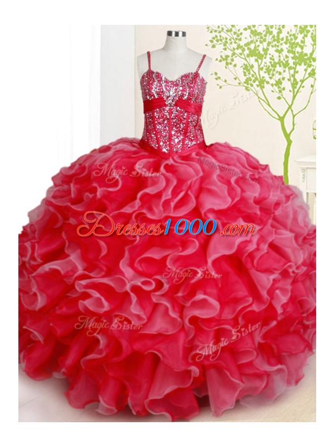 Red Lace Up Quinceanera Gowns Beading and Ruffles Sleeveless Floor Length