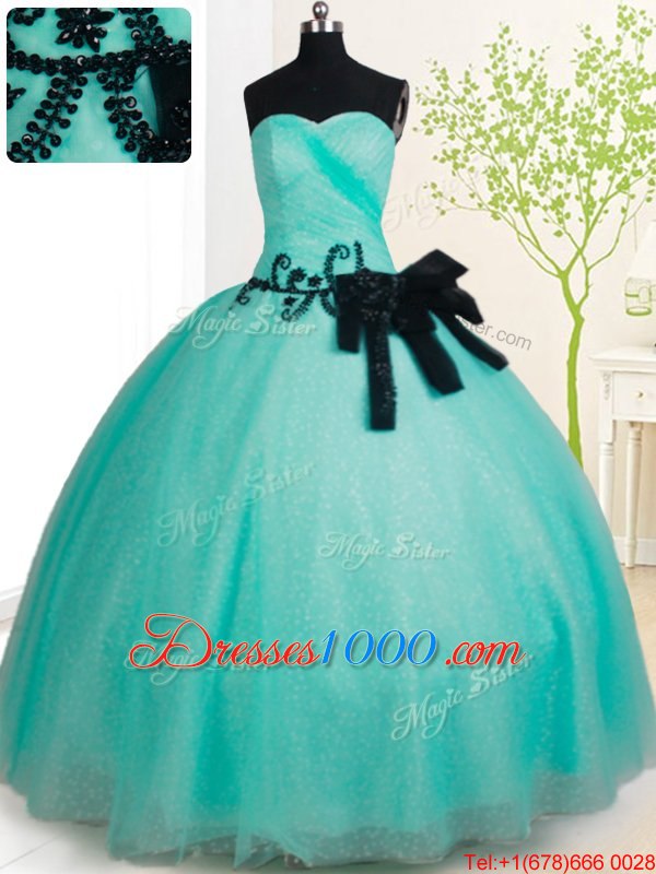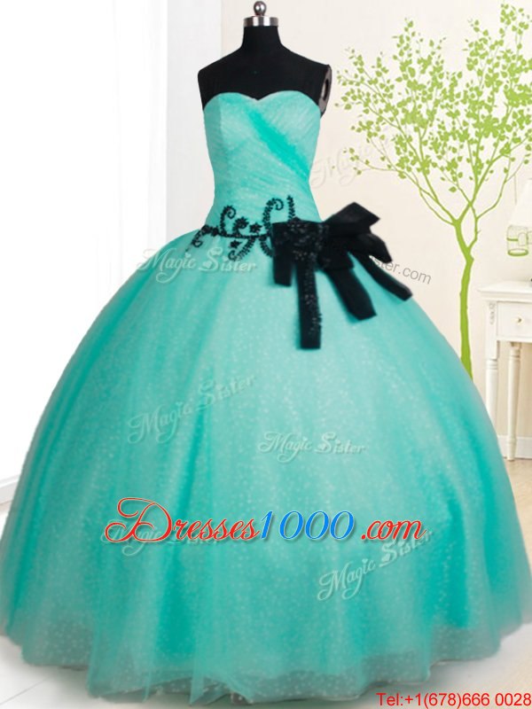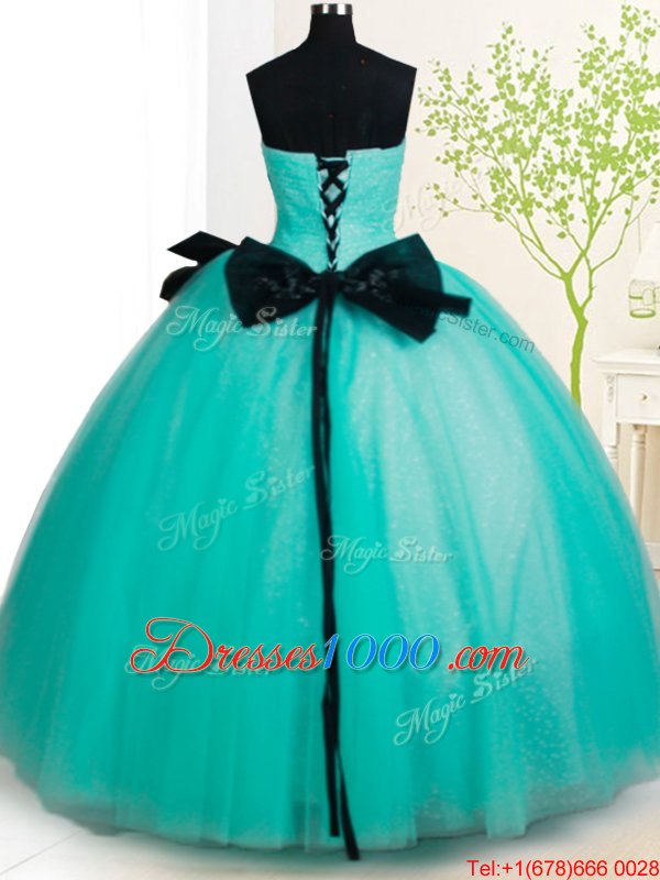 Wonderful Turquoise Tulle Lace Up Sweetheart Sleeveless Floor Length Quinceanera Gown Beading and Bowknot