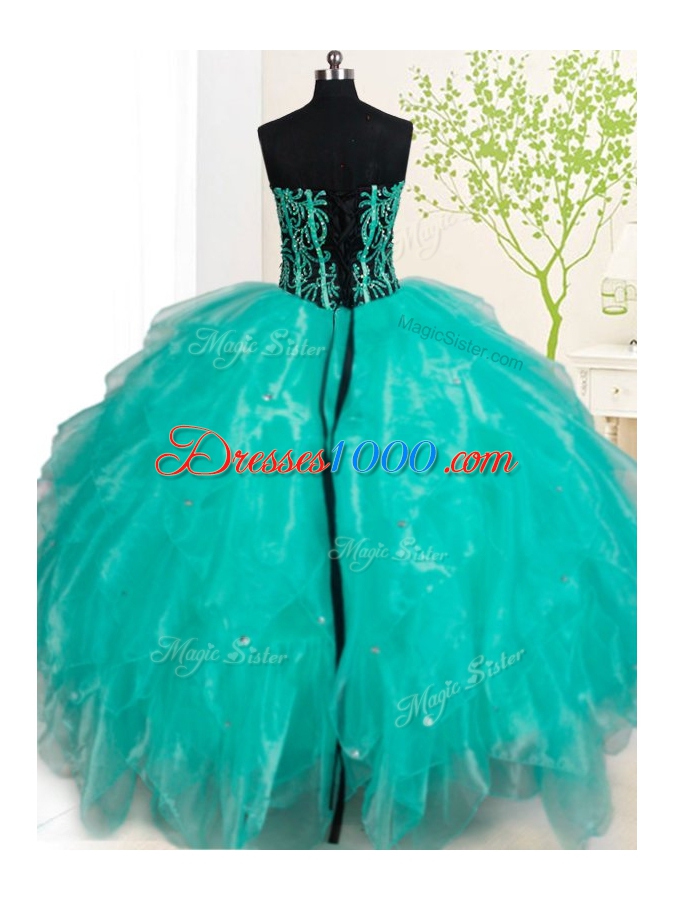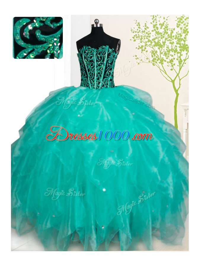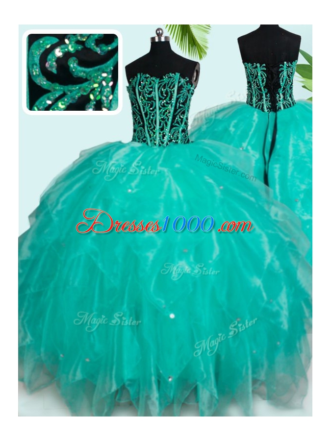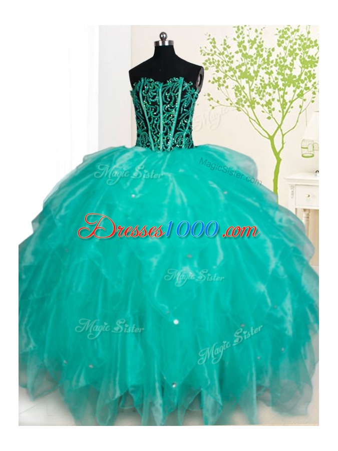 Sweetheart Sleeveless Lace Up Vestidos de Quinceanera Turquoise Organza