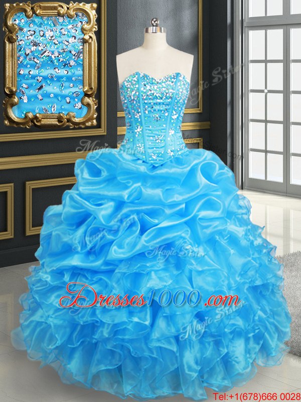 Vintage Sweetheart Sleeveless Sweet 16 Dresses Floor Length Beading and Ruffles Royal Blue Organza