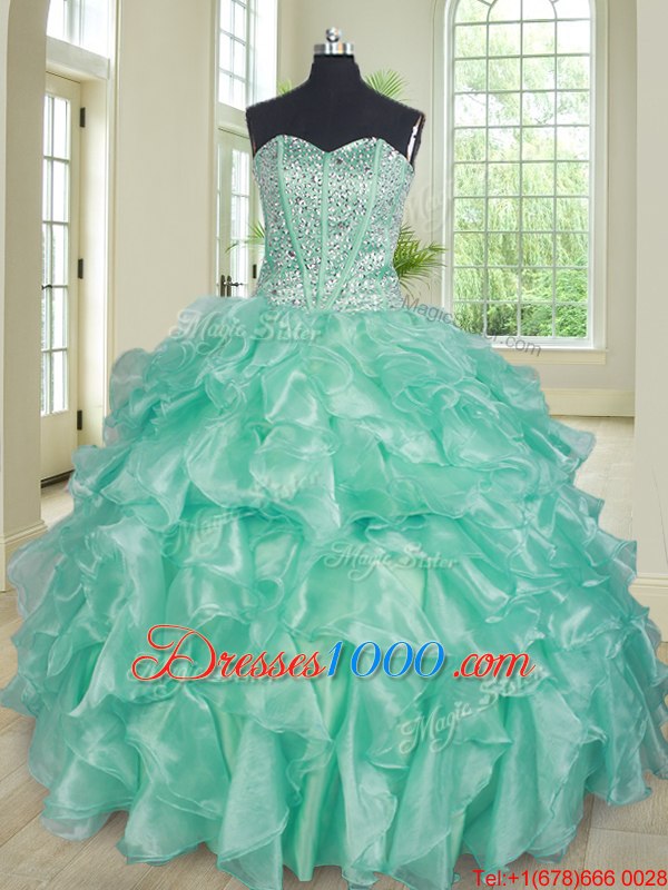 Apple Green Lace Up Sweetheart Beading and Ruffles 15 Quinceanera Dress Organza Sleeveless