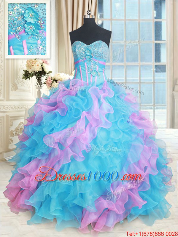 Multi-color Quinceanera Gown Military Ball and Sweet 16 and Quinceanera and For with Beading and Appliques and Ruffles Sweetheart Sleeveless Lace Up