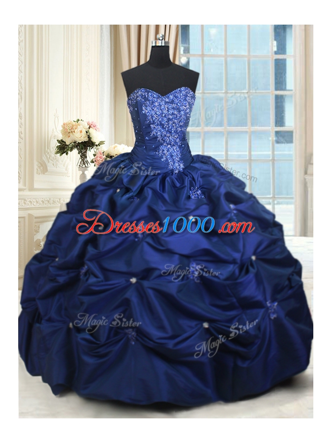 Custom Made Navy Blue Sweetheart Neckline Appliques and Pick Ups Sweet 16 Quinceanera Dress Sleeveless Lace Up