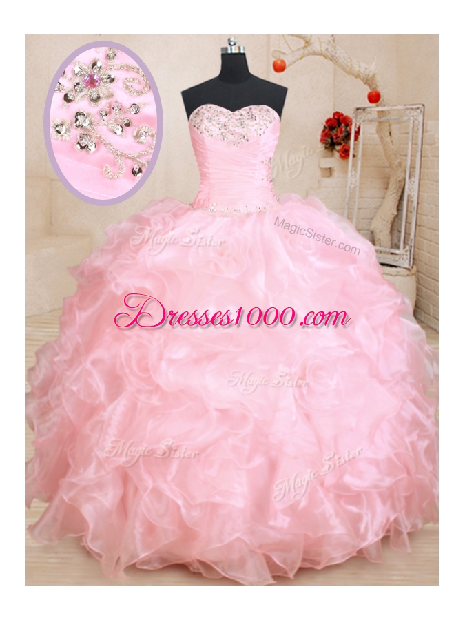 Floor Length Baby Pink Quinceanera Gowns Sweetheart Sleeveless Lace Up