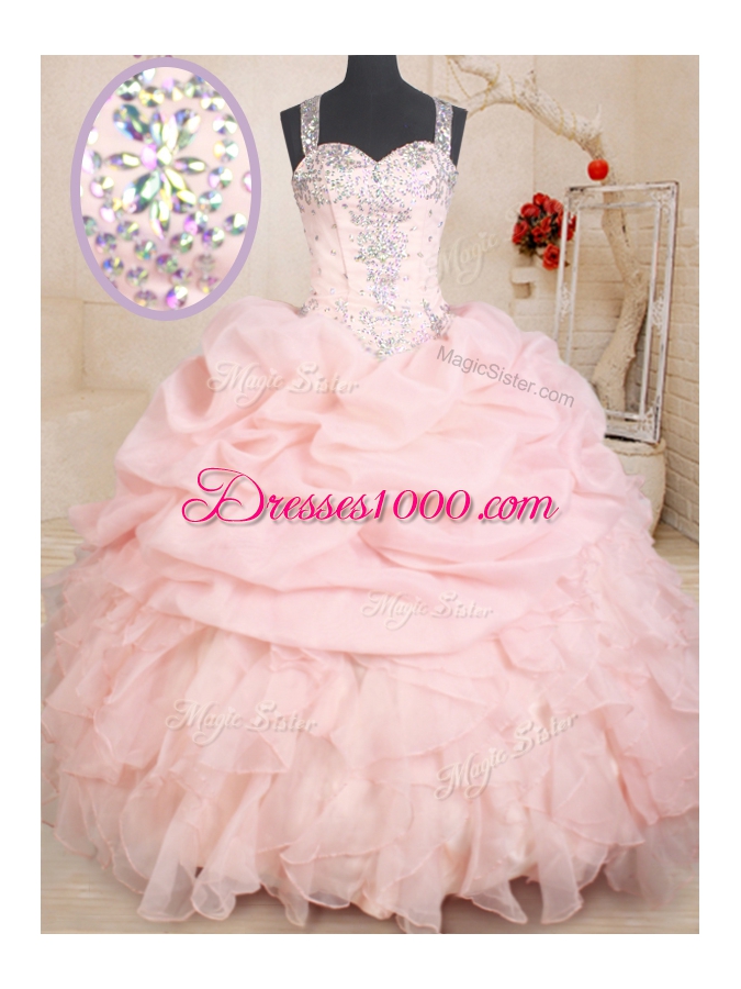 Straps Sleeveless Organza Quinceanera Gowns Beading and Ruffles and Pick Ups Zipper