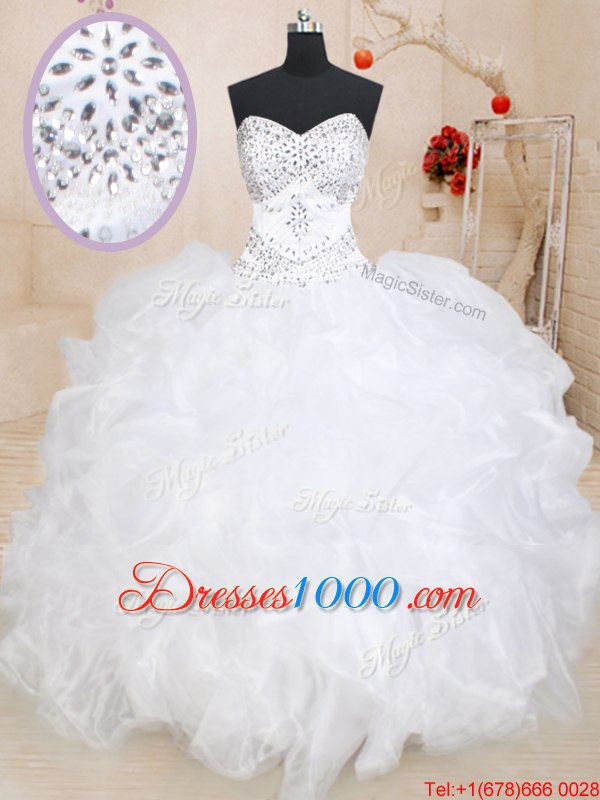 Glittering Floor Length Ball Gowns Sleeveless White 15 Quinceanera Dress Lace Up