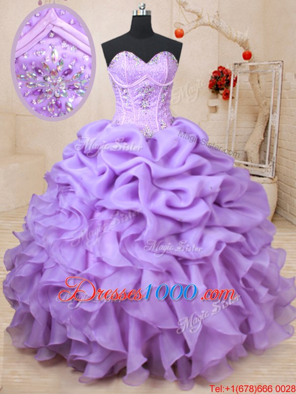 Sleeveless Beading and Ruffles and Pick Ups Lace Up Sweet 16 Dress