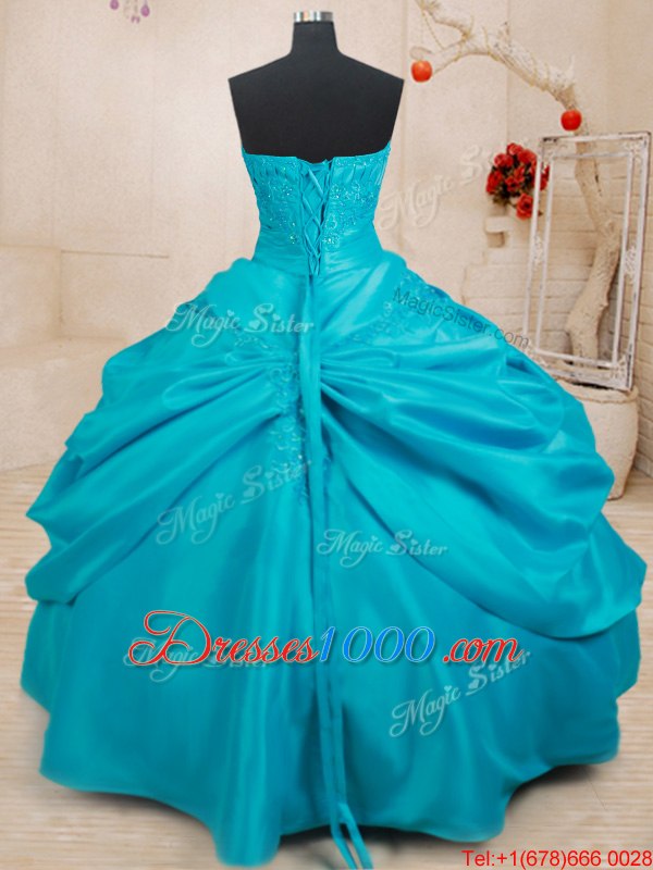 Ball Gowns Quinceanera Gowns Teal Strapless Taffeta Sleeveless Floor Length Lace Up