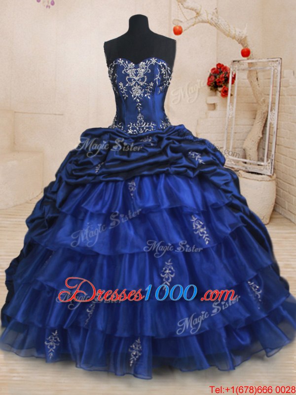 Spectacular Pick Ups Ruffled Royal Blue Sleeveless Organza and Taffeta Brush Train Lace Up Sweet 16 Quinceanera Dress for Military Ball and Sweet 16 and Quinceanera