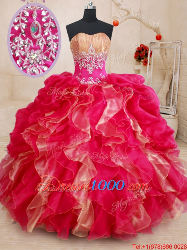 Sweetheart Sleeveless Lace Up Quinceanera Gown Red Organza