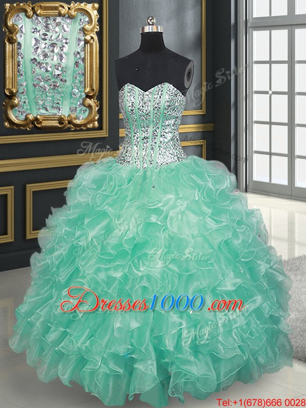 Sweetheart Sleeveless Organza Quince Ball Gowns Beading and Ruffles Lace Up