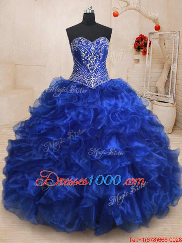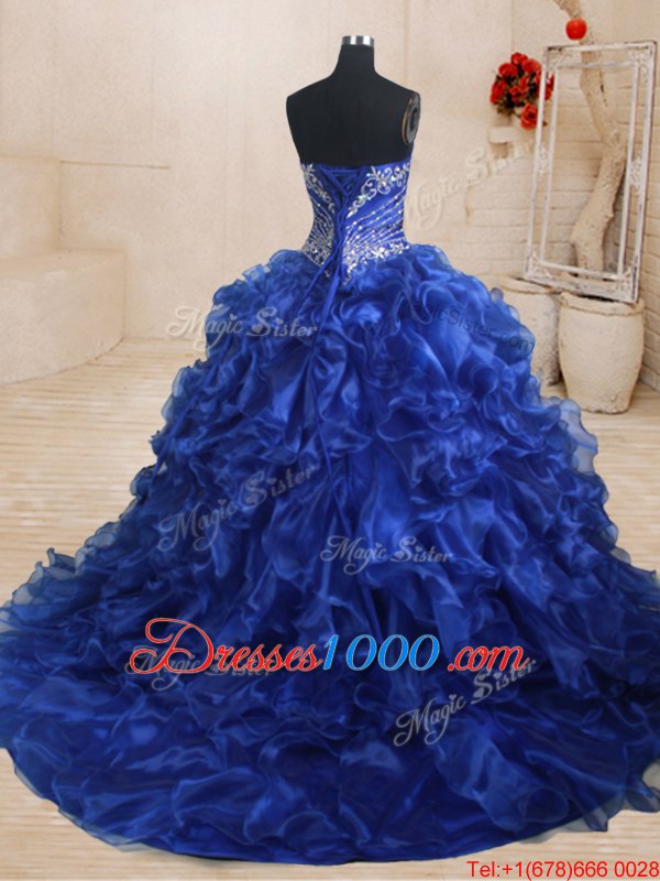 Great Sweetheart Sleeveless Organza 15th Birthday Dress Beading and Ruffles Brush Train Lace Up