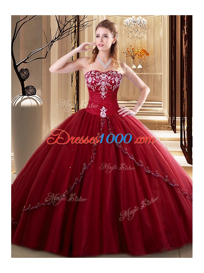Stylish Floor Length Ball Gowns Sleeveless Wine Red Sweet 16 Dresses Lace Up