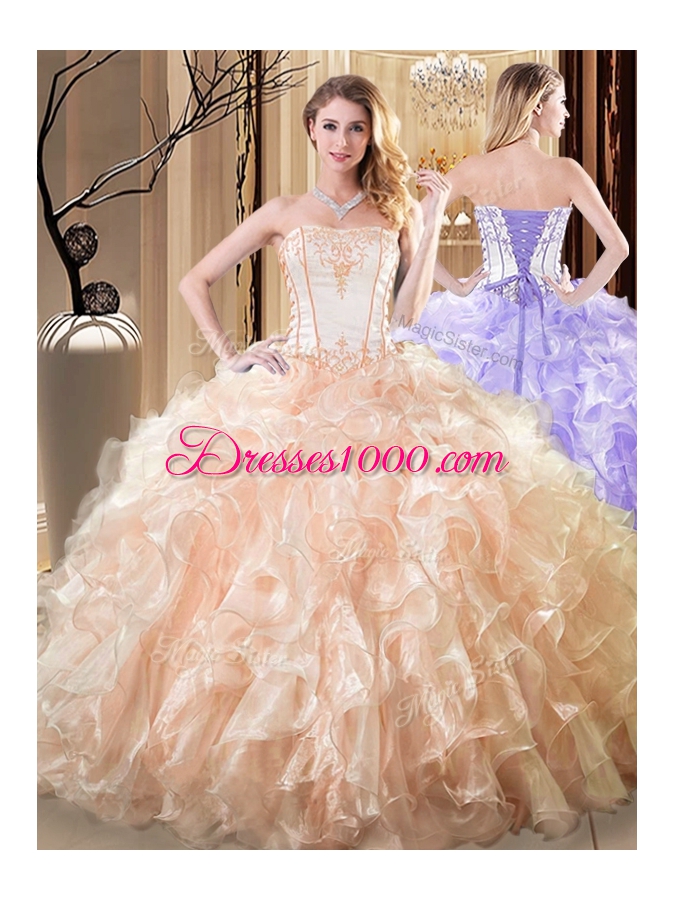 Edgy Floor Length Ball Gowns Sleeveless Yellow Quinceanera Dresses Lace Up