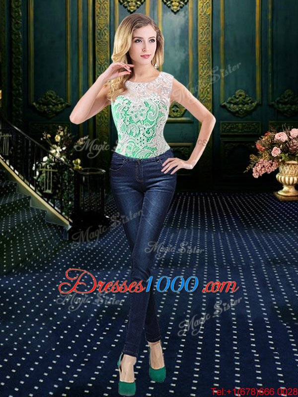 Comfortable Four Piece Scoop Floor Length Apple Green 15 Quinceanera Dress Tulle Sleeveless Lace and Pick Ups