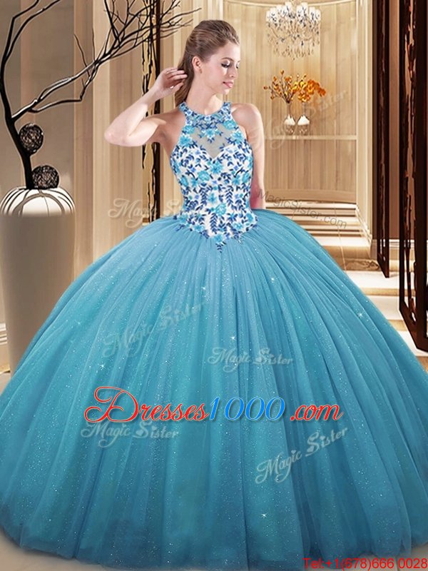 Noble Tulle Sleeveless Floor Length Quinceanera Dresses and Lace and Appliques