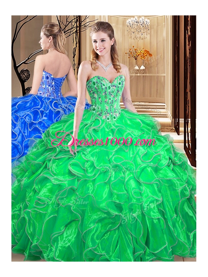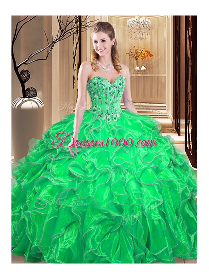 Beauteous Ball Gowns Ball Gown Prom Dress Green Sweetheart Organza Sleeveless Floor Length Lace Up