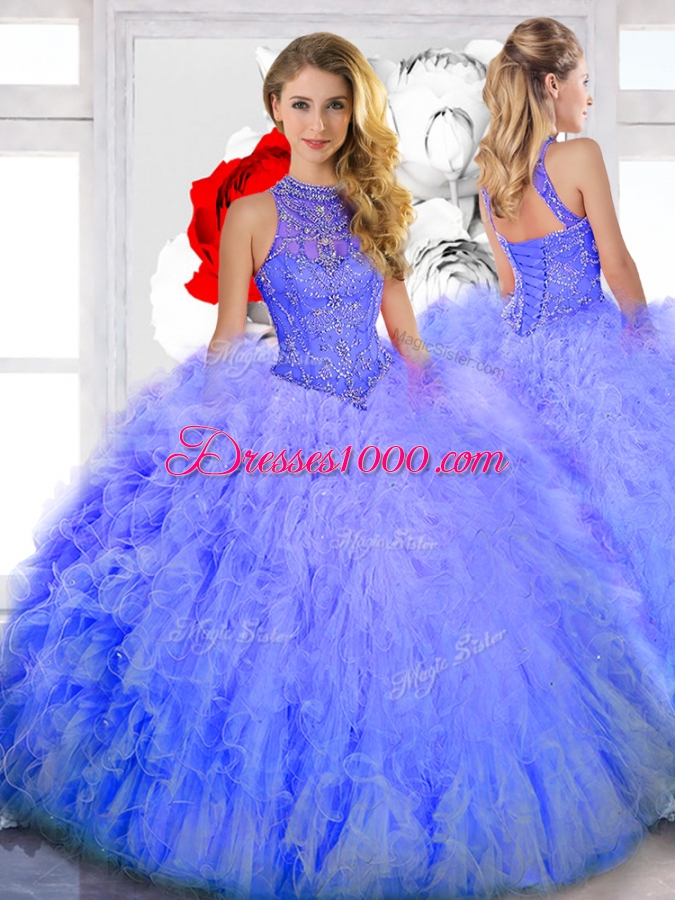 Perfect Sleeveless Beading and Ruffles Lace Up Quince Ball Gowns
