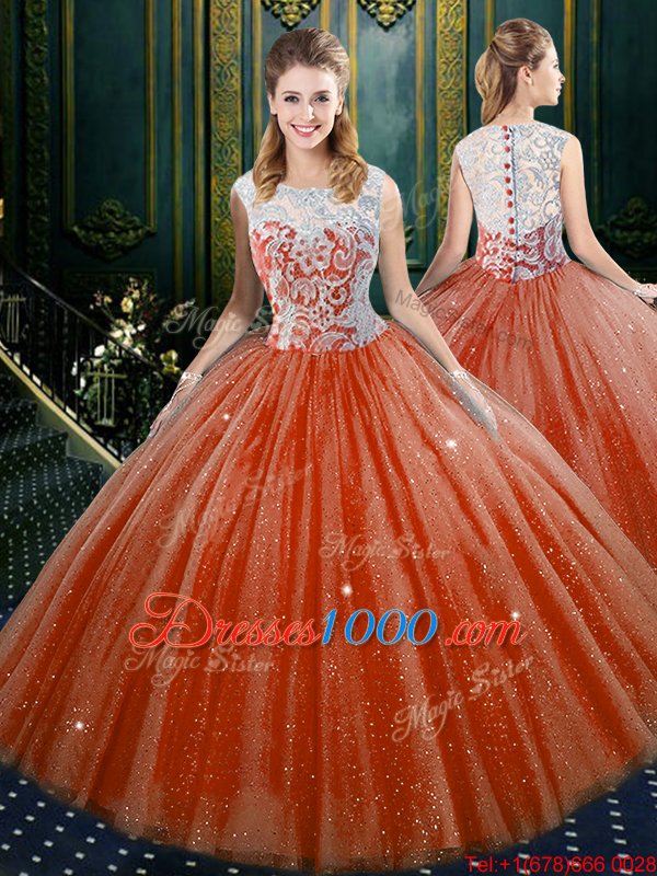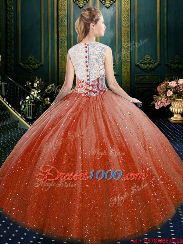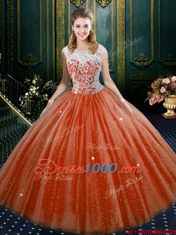 Orange Red Zipper Quinceanera Dress Lace Sleeveless Floor Length
