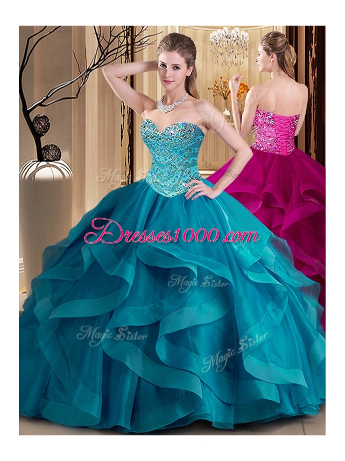Flare Teal Sleeveless Tulle Lace Up Vestidos de Quinceanera for Military Ball and Sweet 16 and Quinceanera
