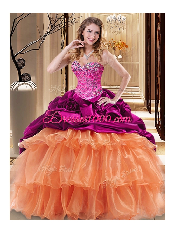 Fabulous Multi-color Lace Up Quinceanera Dress Beading and Ruffles Sleeveless Floor Length