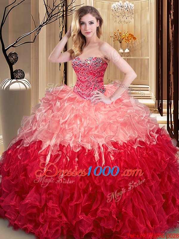 Multi-color Organza Lace Up Sweetheart Sleeveless Floor Length Vestidos de Quinceanera Ruffles