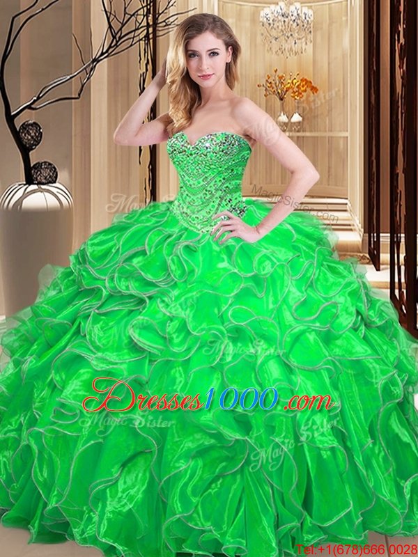 Great Sweetheart Sleeveless Organza Vestidos de Quinceanera Beading and Ruffles Lace Up