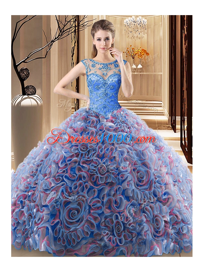 Scoop Sleeveless Brush Train Beading Lace Up Sweet 16 Dress
